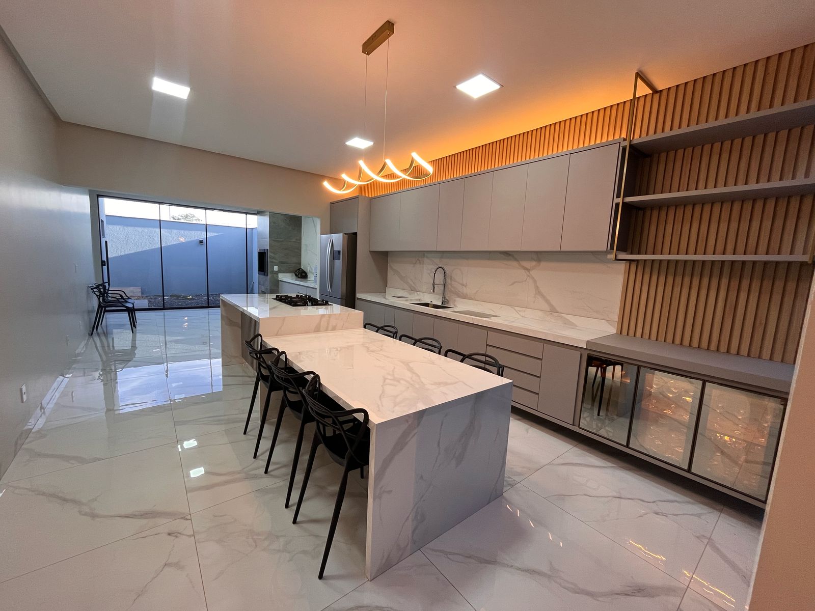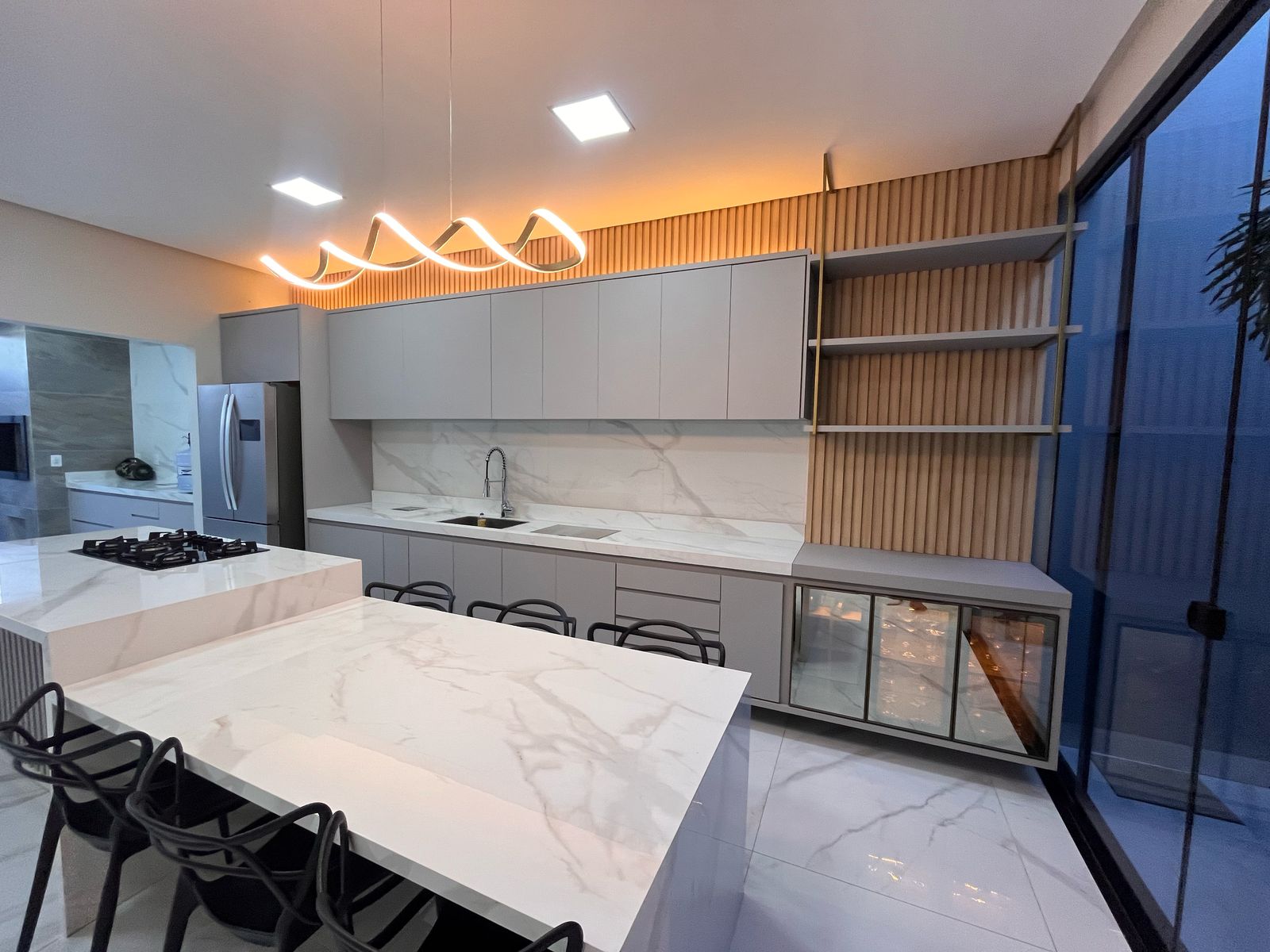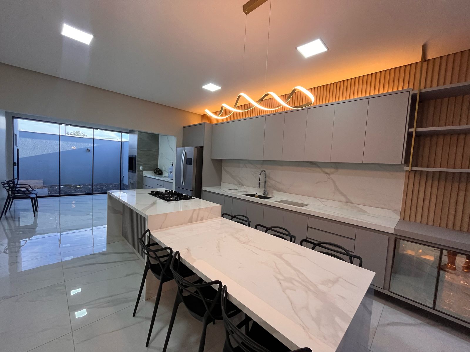 Cozinha com ilha, fogão cook top