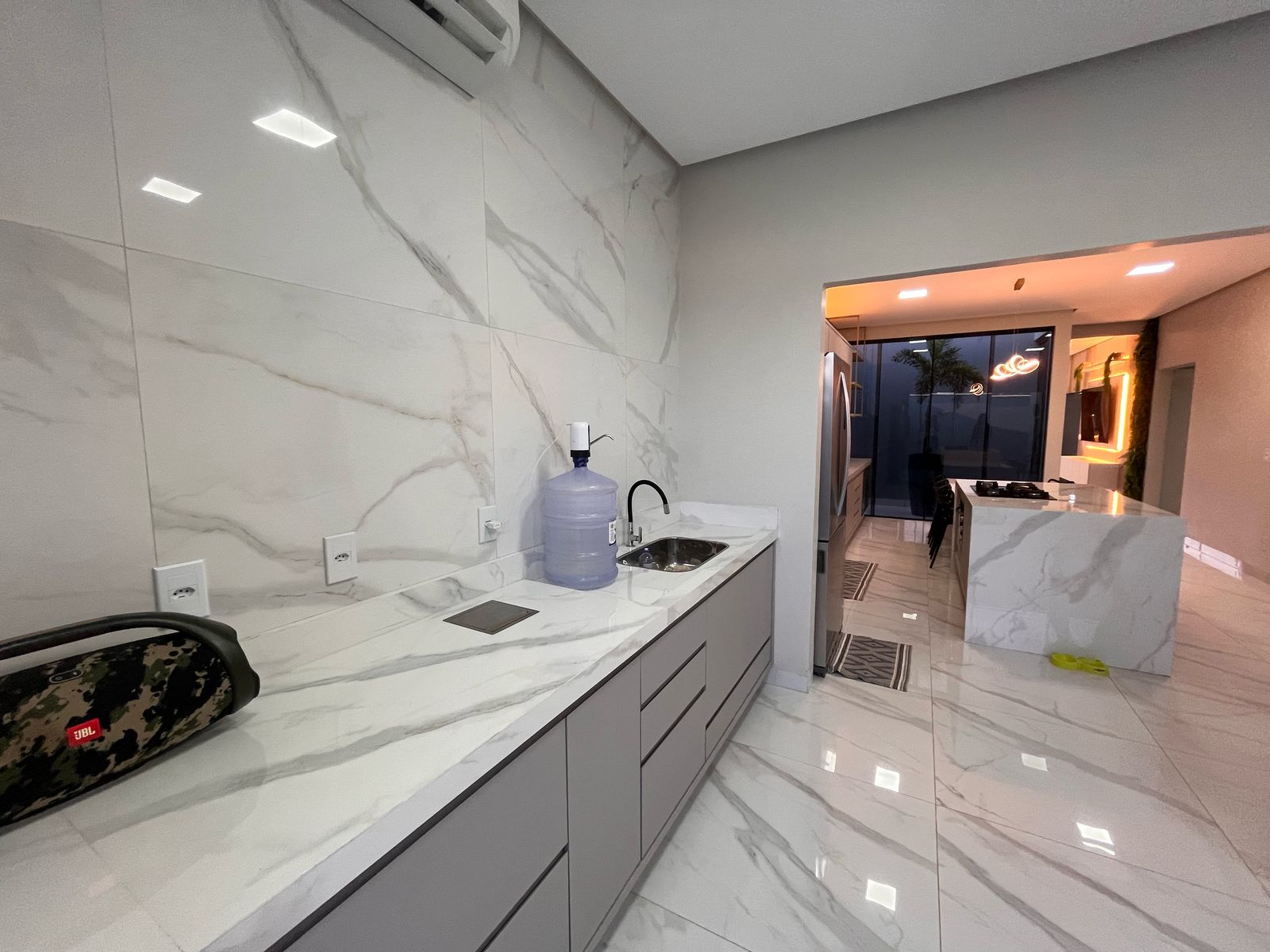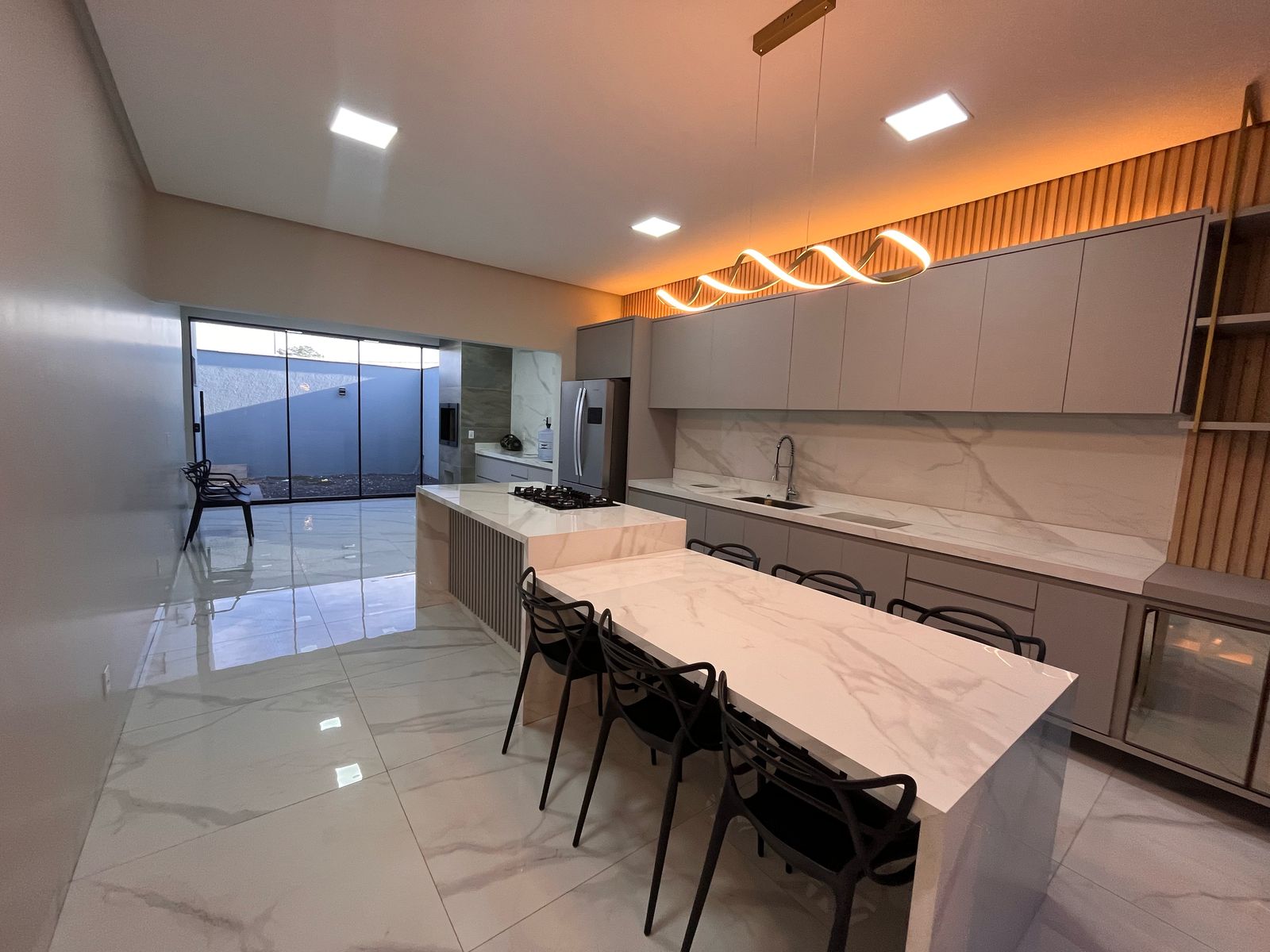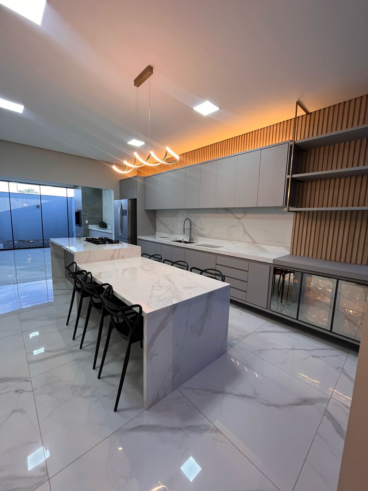 Cozinha com ilha, fogão cook top